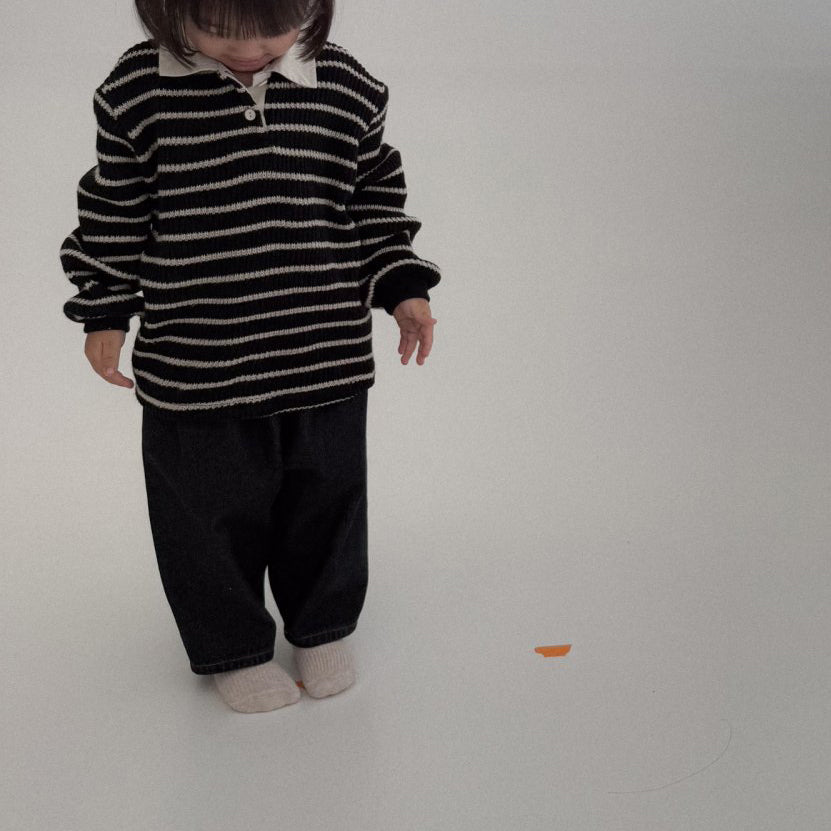 Baby Bella F25 Stripe Collared Knit Long Sleeve Top (6m-3y) - Black