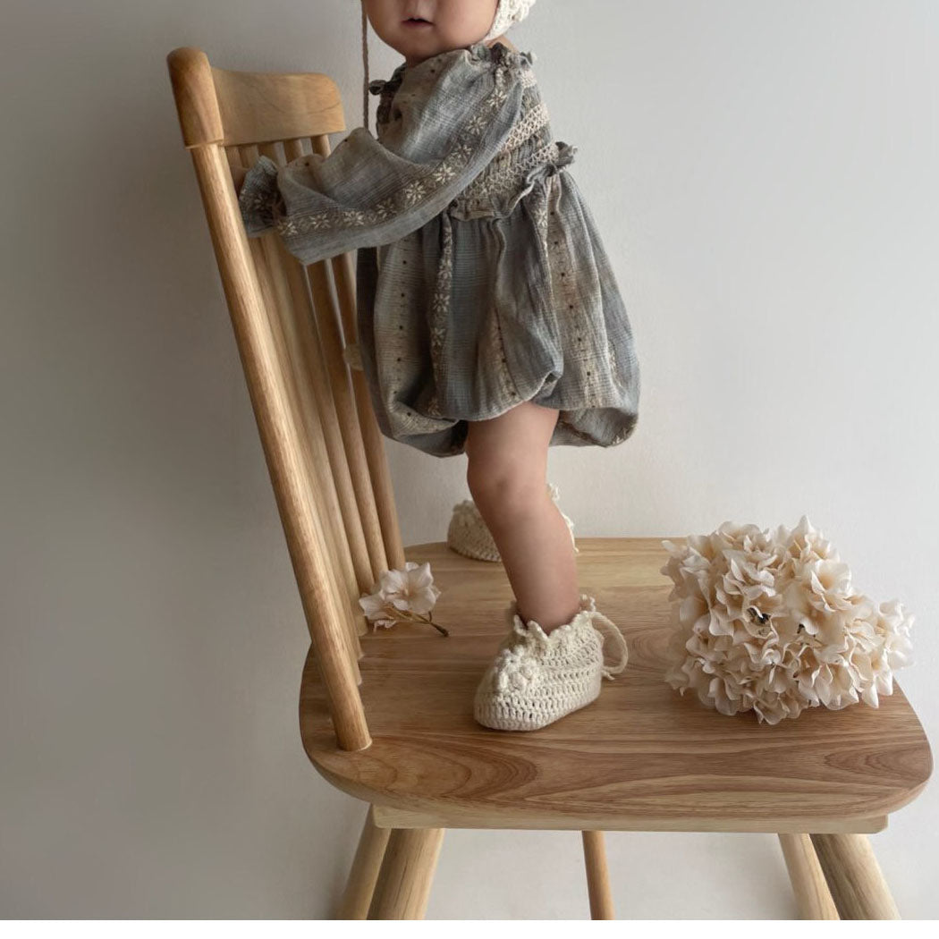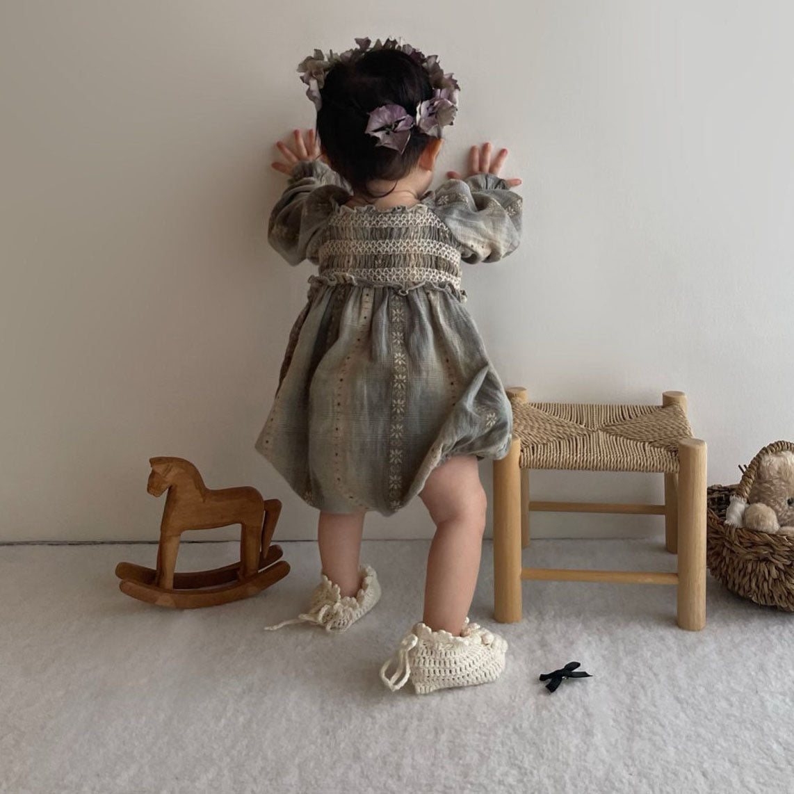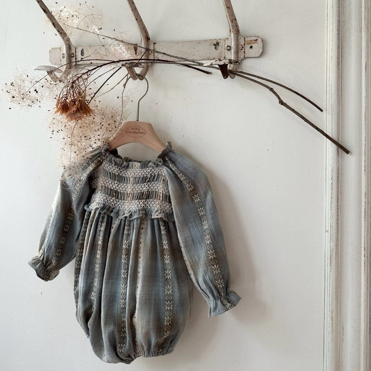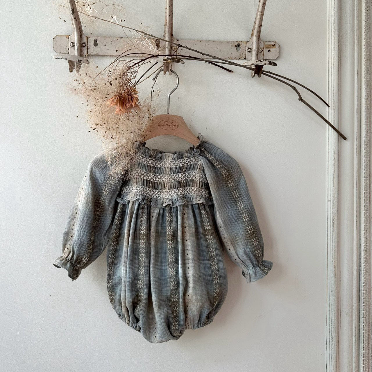 Baby Monbebe F25 Floral Embroidered Check Smocked Bodice Romper (3-24m) - Mint