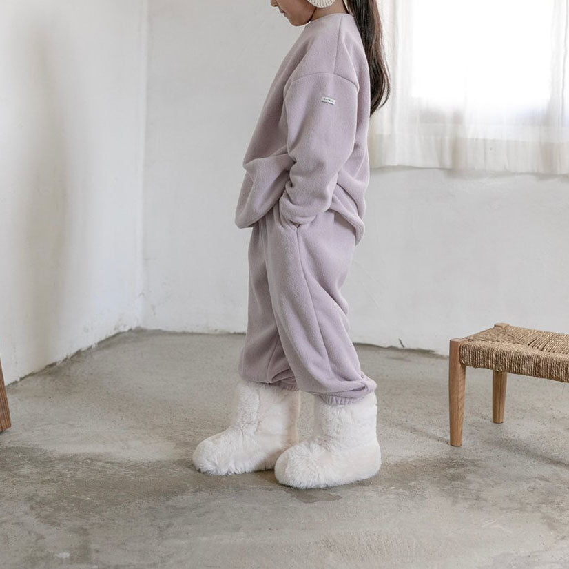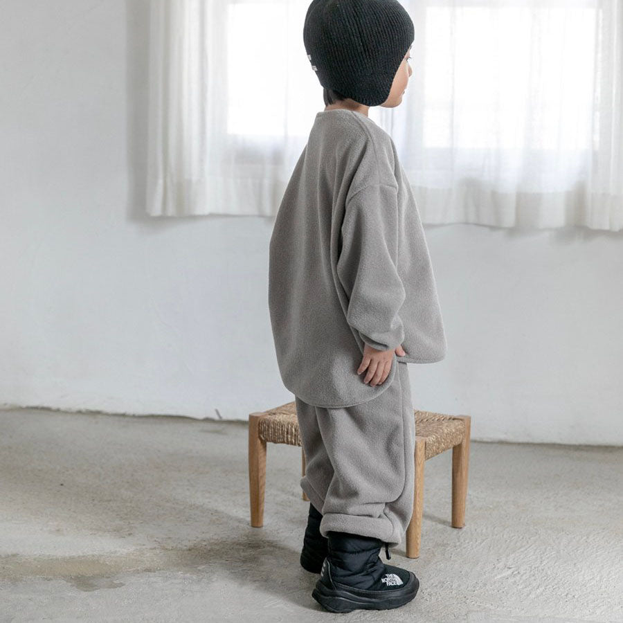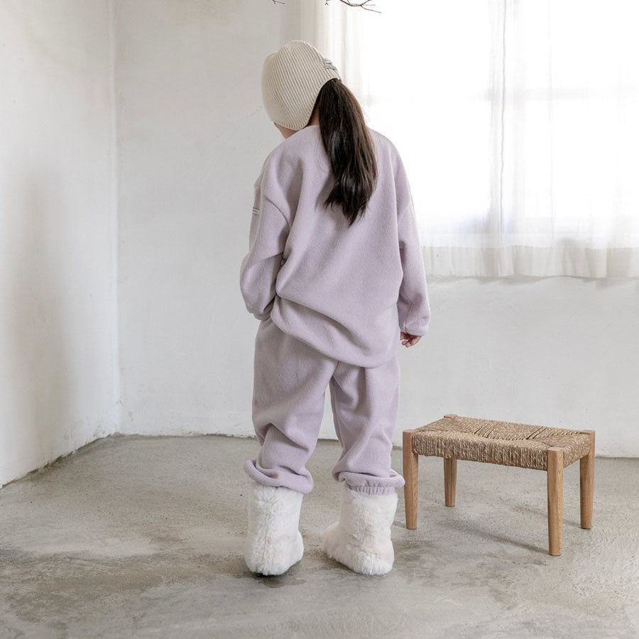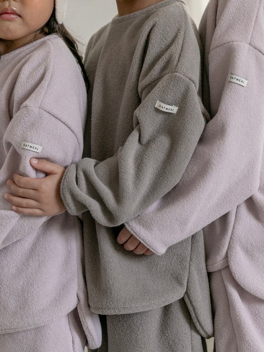 - Curved hem long sleeve top and jogger pants in terry cloth